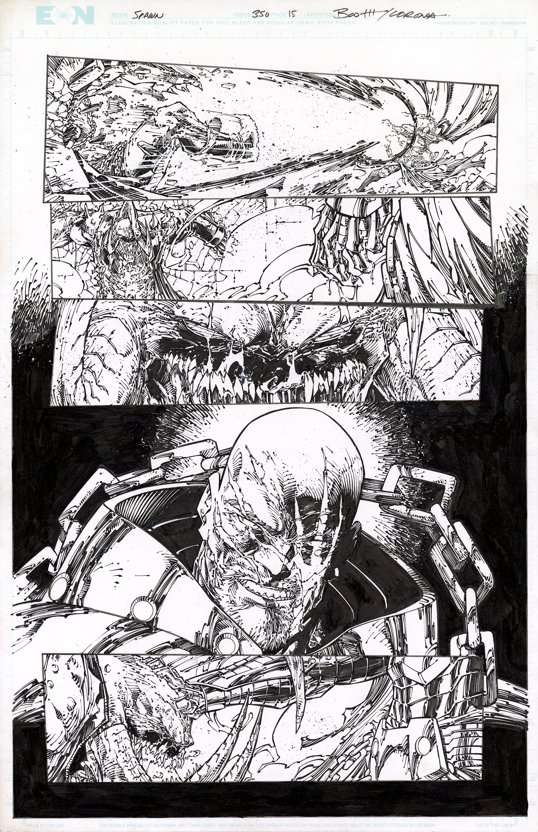 Spawn #350 Page #15 Original Art from the regular series team of Brett Booth and Adelso Corona!!! Artwork measures 11x17 on bristol board. Traditional inks over Original pencils. Signed by inker Adelso Corona !!!