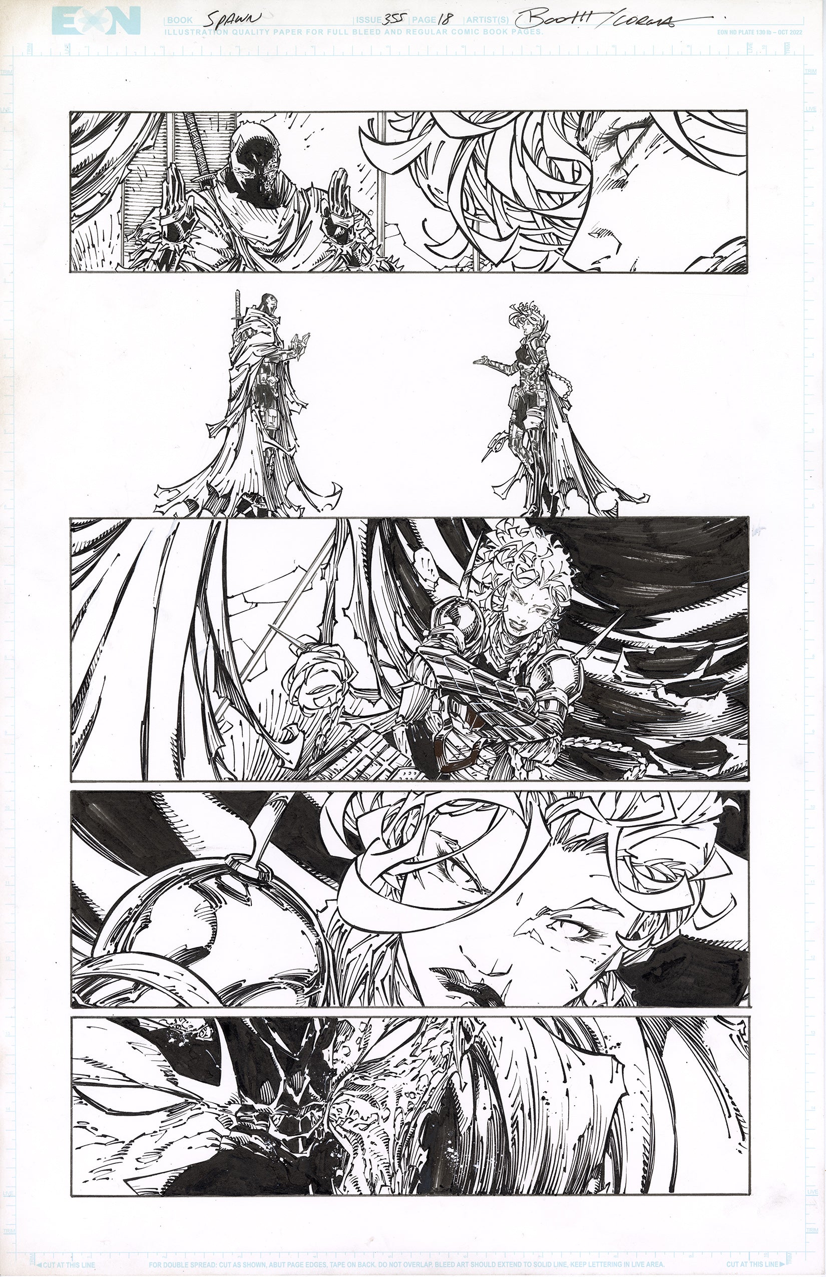Spawn #355 Page #18 Original Art from the regular series team of Brett Booth and Adelso Corona!!! Artwork measures 11x17 on bristol board. Traditional inks over Original pencils. Signed by inker Adelso Corona !!!
