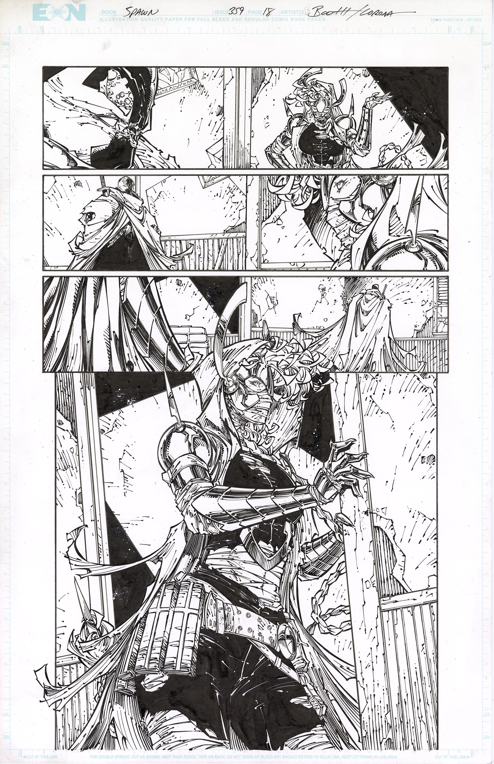 Spawn #359 Page #22 Original Art from the regular series team of Brett Booth and Adelso Corona!!! Artwork measures 11x17 on bristol board. Traditional inks over Original pencils. Signed by inker Adelso Corona !!!