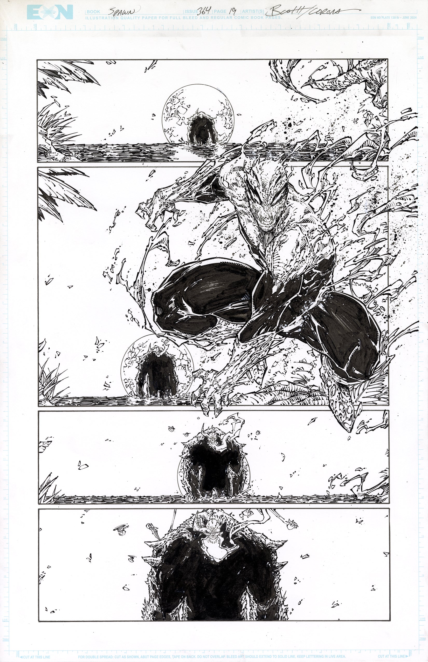 Spawn #364 Page #19 Original Art from the regular series team of Brett Booth and Adelso Corona!!! Artwork measures 11x17 on bristol board. Traditional inks over Original pencils. Signed by inker Adelso Corona !!!